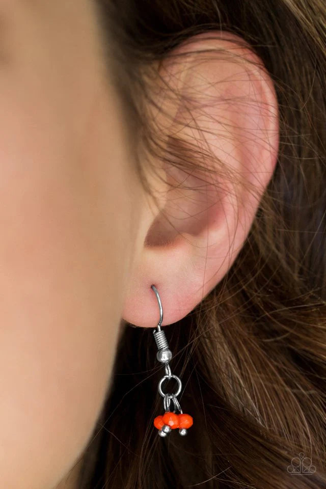 Faceted Cherry Tomato beads swing from the bottom of a glistening silver crescent, creating a dainty fringe below the collar for a playful tribal inspired look. Features an adjustable clasp closure. Sold as one individual necklace. Includes one pair of matching earrings.