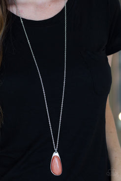 A glowing orange moonstone is pressed into an asymmetrical silver frame, creating a whimsical pendant. Features an adjustable clasp closure.