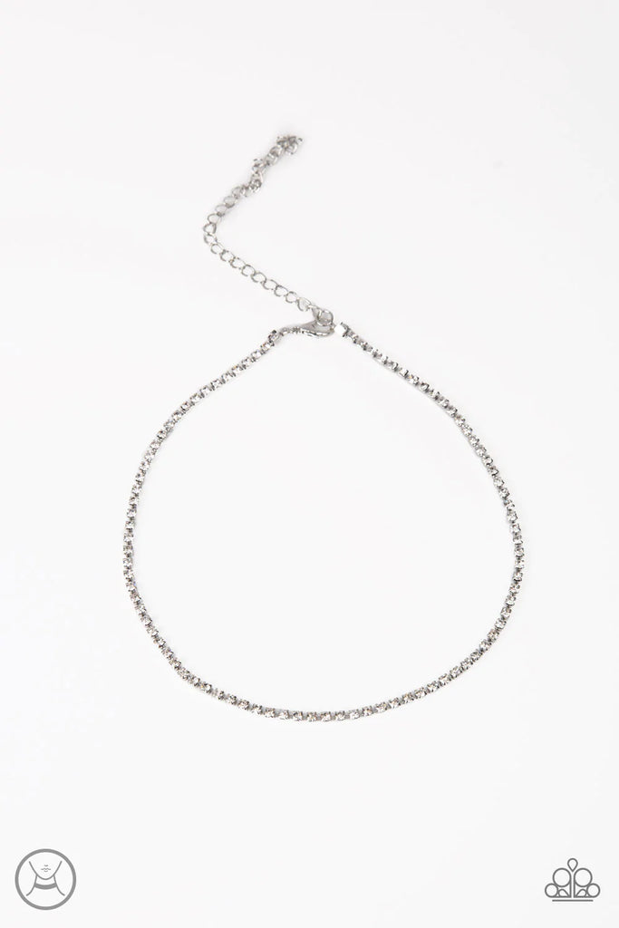 Pressed into sleek silver square frames, a strand of glittery white rhinestones wraps around the neck for an edgy look Features an adjustable clasp closure.