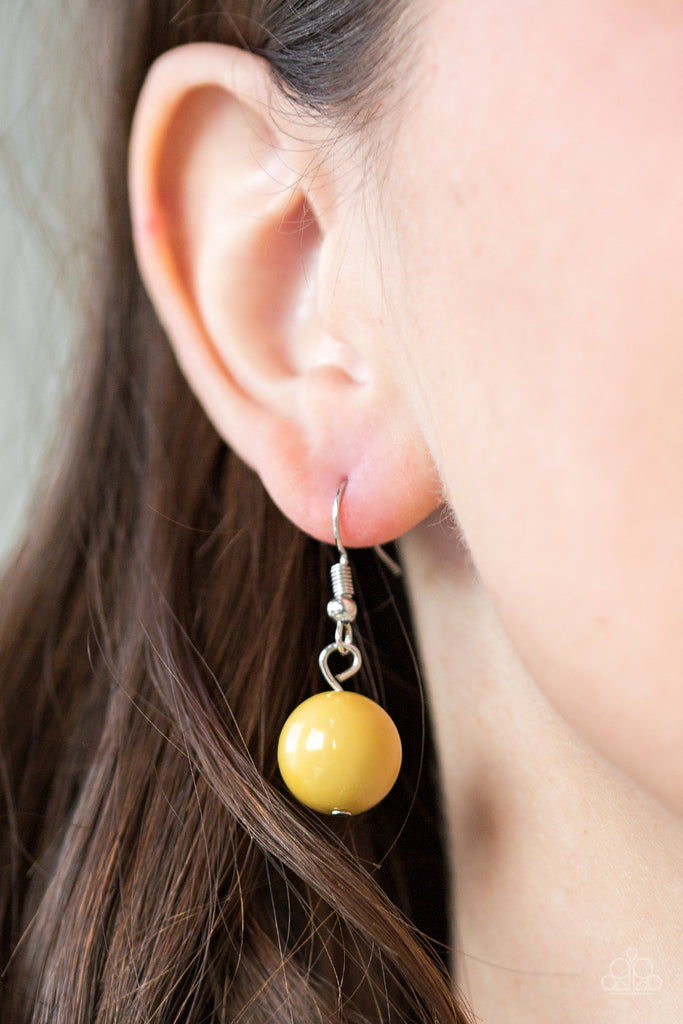 Polished yellow beads and dramatic silver beads drape below the collar for a perfect pop of color. Features an adjustable clasp closure.