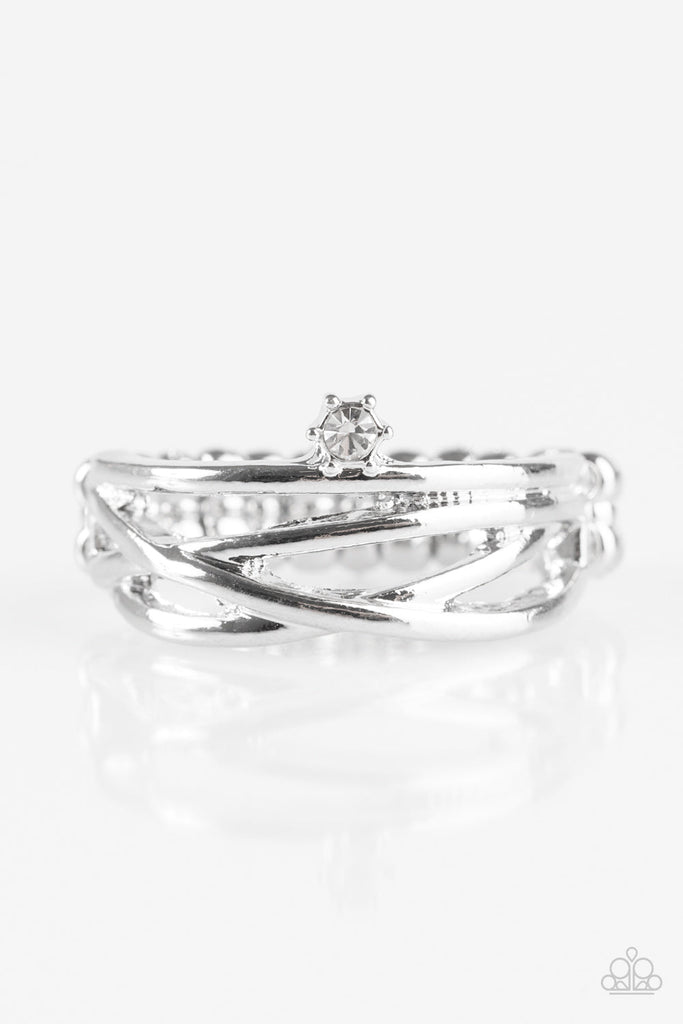Glistening silver bars wrap across the finger, creating a layered band. A dainty white rhinestone dots the top of the crisscrossing bands, adding a beautiful finish to the casual palette. Features a dainty stretchy band for a flexible fit. Sold as one individual ring.